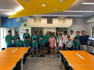 第二站來到了清水國中,同學們已開始學習電子學基礎課程,看到認真的同學在筆記上用不同顏色標記重點,時而與同學討論;老師說「先將基礎原理熟悉後,到實際操作時才不會手忙腳亂」,這學期的導師由三位東海大學社工系四年級學生來擔任,希望透過年輕化語言及相處模式能夠更貼近學生生活。