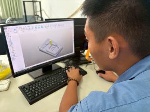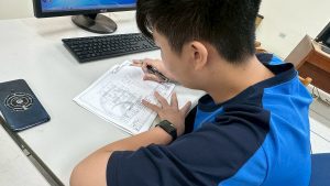 在今日的課程中,學生們先從程式撰寫開始,逐步練習如何將設計圖轉換成精確的數值,再透過 CNC 銑床進行加工。銑床乙級需具備讀圖與程式編碼能力,掌握進給速度、刀具補正與切削深度等細節。任何一個小小的誤差,都可能導致工件尺寸超出公差範圍。這樣扎實的訓練,不僅是為了通過檢定,更是在為學生奠定未來進入產業的堅實基礎。