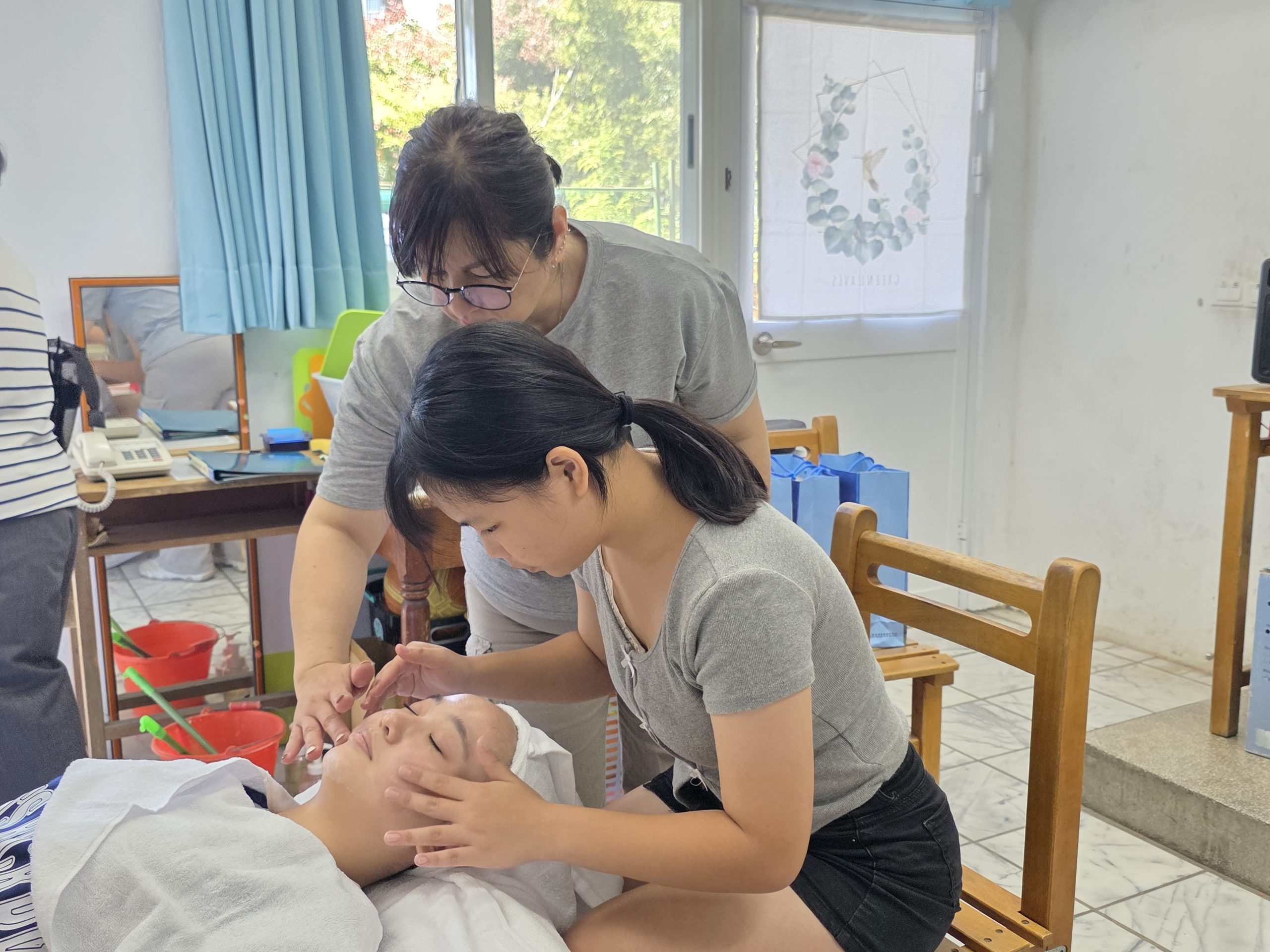 美容相關課程中,男同學的參與通常較少,不過這次班上有兩位男同學加入。操作過程中,其中一位男同學與我們分享,他的夢想是未來到高雄開設自己的工作室,讓人十分驚喜。在開課的第一天就展現出明確的學習目標與方向,令人深受感動,我們也衷心祝福他能實現理想。