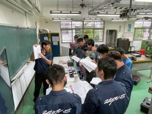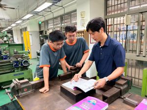 初秋週六,來到新營高工進行課程訪視,走進機械科教室時,耳邊傳來機台運轉的聲音,學生們正專注地操作 機械加工的車床,教室裡瀰漫著一股緊張又專注的氛圍。每位學生都聚精會神地盯著螢幕與工件,反覆確認刀具路徑與程式指令,老師則穿梭在學生之間,指導他們操作細節與安全注意事項。這是一堂為了「機械加工乙級檢定」所開設的課程,學生們都在為即將到來的檢定加緊練習。