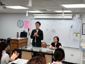 踏入美容科教室時,學生們早已整齊就座,眼神專注、神情自信。校長與執行長接連勉勵同學們,技職教育的核心在於「專業與態度」的並重,唯有不斷磨練技術、堅定信念,才能在未來的道路上立足並發光。那句「學到的,就是能帶著走的本事」深深印在每位同學的心中。