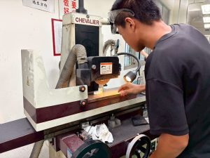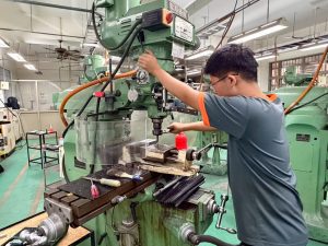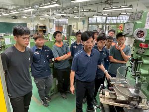 其中,有一位學生特別引人注目。他來自模具科,目前已經考取了十五張丙級證照,接下來正準備挑戰七張乙級檢定,包括模具加工乙級、機械加工乙級、CNC銑床乙級、CNC車床乙級,以及兩張熱處理乙級。聽著老師介紹他的努力過程,令人深刻感受到技職學生對專業技術的堅持與熱情。這位學生每天留在學校加班練習,不論是刀具更換、程式撰寫,還是精度修正,他都要求自己做到最好。