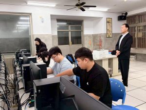 走到電腦硬體設備乙級的教室,氣氛同樣熱絡但更為安靜細膩。學生們正使用電腦主機,確認主機板、硬碟、記憶體及各項接地、測試程序是否符合規範。有的學生在做故障排除模擬,有的正在練習線材整理與系統安裝,每個步驟都環環相扣。