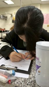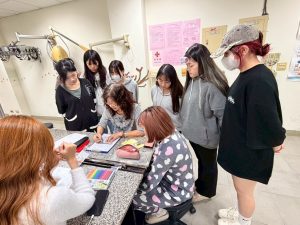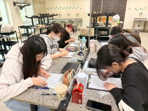整堂課的氛圍既專注又充滿期待,看著學生們在紙上為未來的專業打下基礎,也讓人充分感受到五育高中美容科的活力與用心。