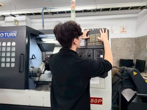 在 CNC 教室裡,機台的運轉聲節奏分明,學生們戴著防護具,專注地操作機台。有人忙著設定加工參數,有人仔細量測工件尺寸,每個動作都小心而精準。老師在旁提醒加工順序與安全重點,同學們一聽到指導,立即調整動作,展現出技職學生的穩定度與實作力。看著成型中的金屬作品,能感受到他們為乙級檢定所做的紮實準備。