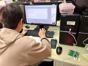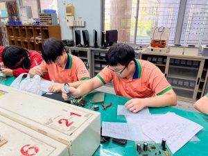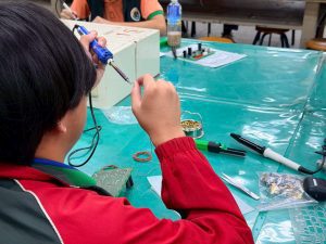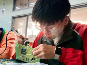 教室裡,老師來回巡視,協助檢查焊點、提醒電烙鐵的角度、熱度與上錫量。同學們正聚精會神地在電路板上焊接,每一顆錫點都顯示著他們的耐心與專注。他們練習拆裝主機板、檢測故障、整理線材,從反覆操作中掌握手感,也逐漸理解未來職場對硬體維修的標準與要求。希望這段訓練能成為他們踏入科技產業前最扎實的基礎,帶著技能,也帶著自信邁向下一步。