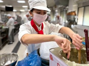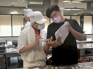 當天令人驚喜的,還有特地回校協助的畢業學長。學長的出現帶給學弟妹一份安心的熟悉感,他以過來人的身份叮囑:「餐飲這條路雖艱辛,但最重要的是找到自己『不可被取代』的能力。」