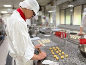 中式麵食乙級的練習極其考驗體力與意志,一待就是六小時。主任觀察到,學生們的心態正悄悄轉變。起初,他們可能對漫長的練習感到疲憊,但隨著一次次揉麵、捏製、出爐,當成品愈發精緻時,內心的自信也隨之增長。因為害怕練習不夠,老師與同學間發展出深厚的革命情感,彼此打氣、互相糾正。這種從「被動學習」到「主動渴望完美」的轉變,正是自信心最真實的量化指標。