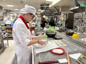 然而,在眾多學生中,聽聞一位家住屏東的女同學。她從國中技藝班開始,便與烘焙結下不解之緣,家中常能聞到她為家人烤製餅乾的香氣。訪談時,她的眼神閃爍著一種難得的「光」,那不是對物質的渴望,而是對未來的憧憬。她目標明確,規劃著未來要攻讀研究所,並深耕餐飲領域。對她而言,實作不只是課程,更是通往夢想的階梯。那種對專業的熱愛,讓她在紛擾的價值觀中,找到了定錨的力量。