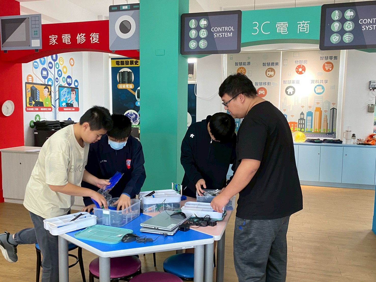 接著前往嘉義水上國中創客班,氣氛立刻轉換成另一種熱鬧節奏。