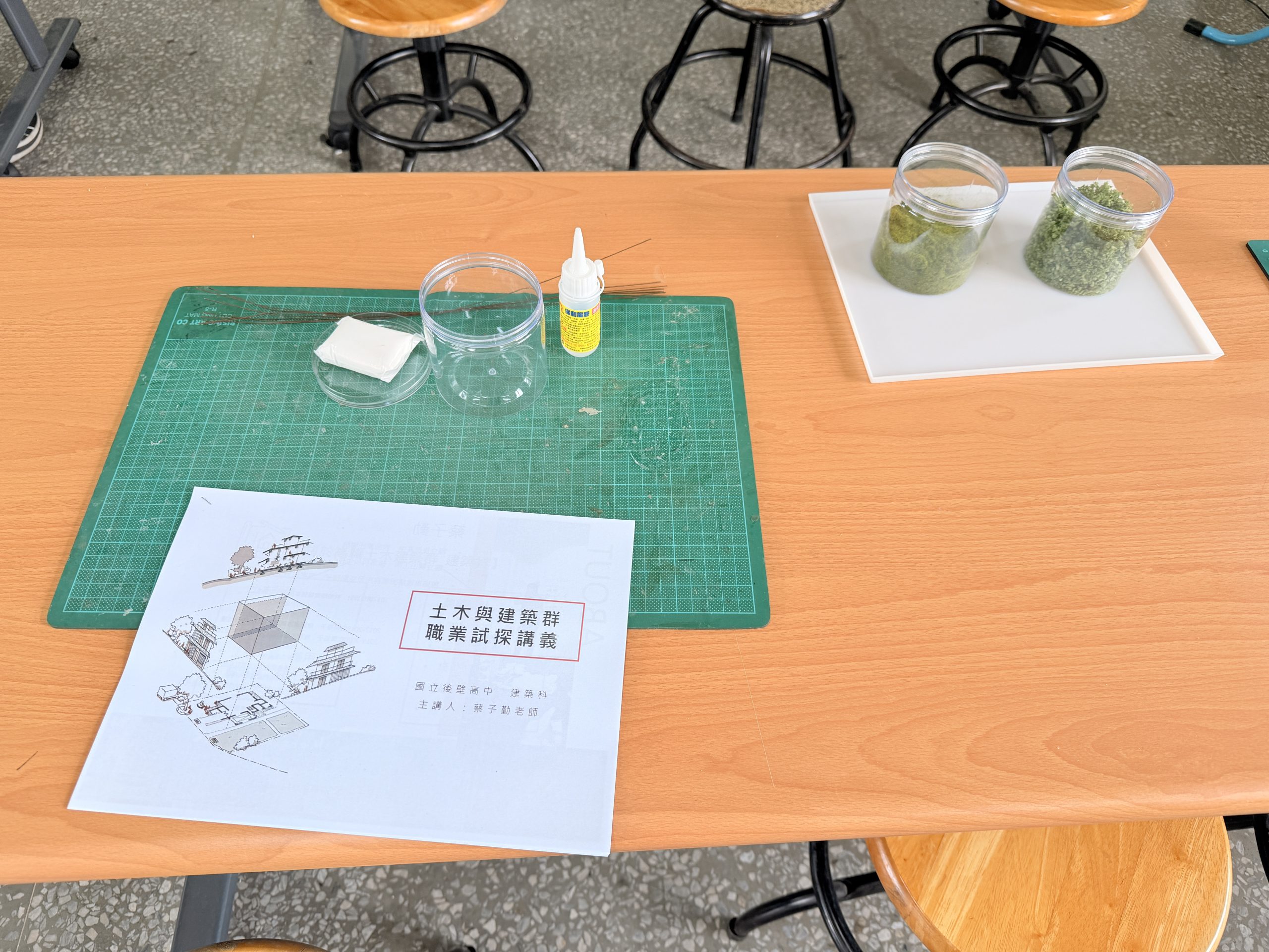 週六一早來到臺南後壁國中創客班,當天課程在後壁高中進行,課程內容為基地模型與植栽模型製作。