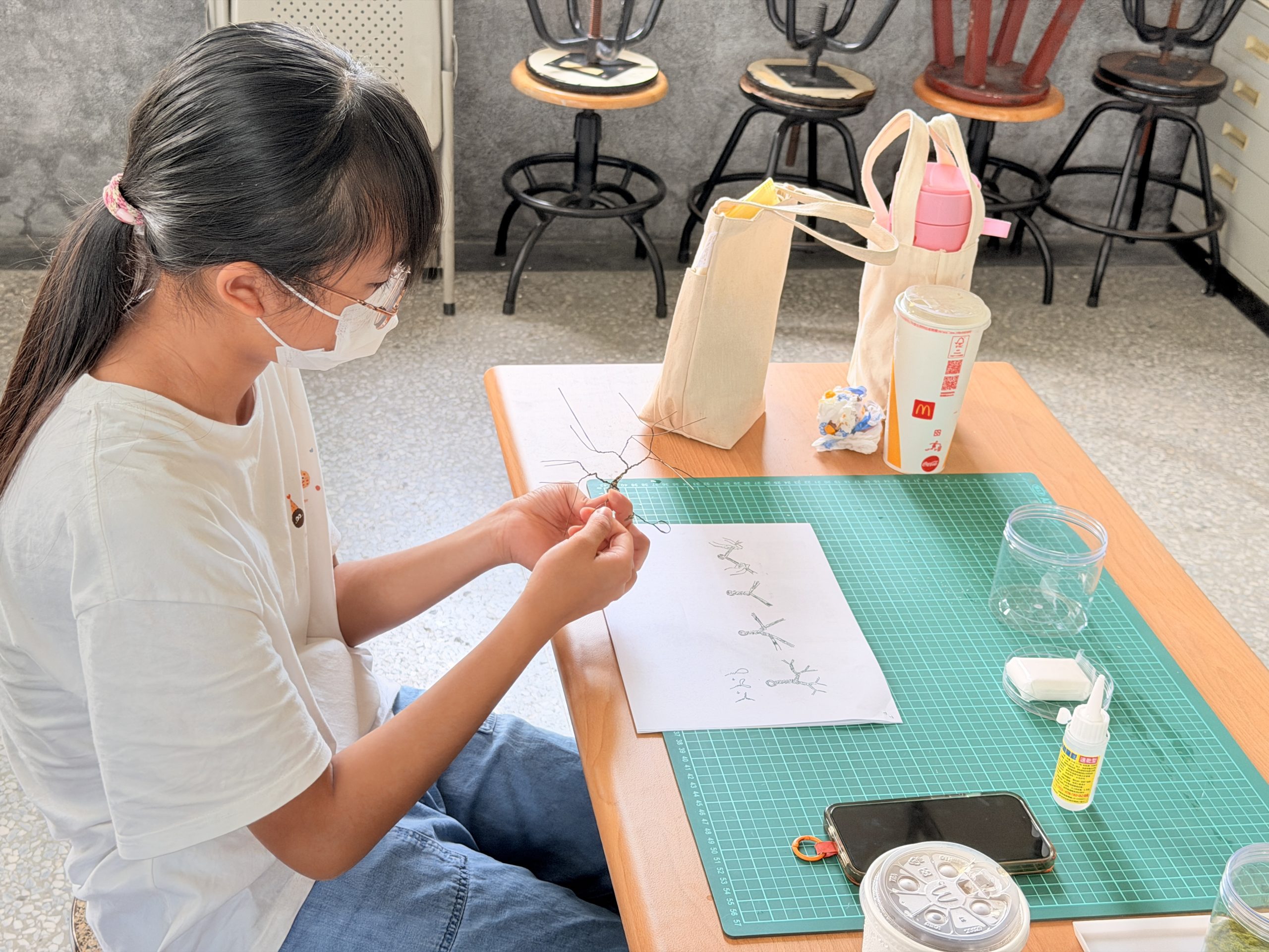 老師欣慰地分享,孩子們在學科上或許暫時找不著樂趣,但一進到實作教室,那份專注投入的神情卻閃閃發光。其中一位同學不僅手感靈活、動作俐落,更展現了獨到的美感,將平凡的鐵絲纏繞出別緻的造型。老師見狀,隨即給予大力的肯定,並溫柔地引導他隨心所欲地創作,讓孩子在雙手之間找回遺失的自信與天賦。
